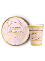 8'li Karton Tabak - Bardak Yaldızlı Happy Birthday Pembe - Altın Yaldız