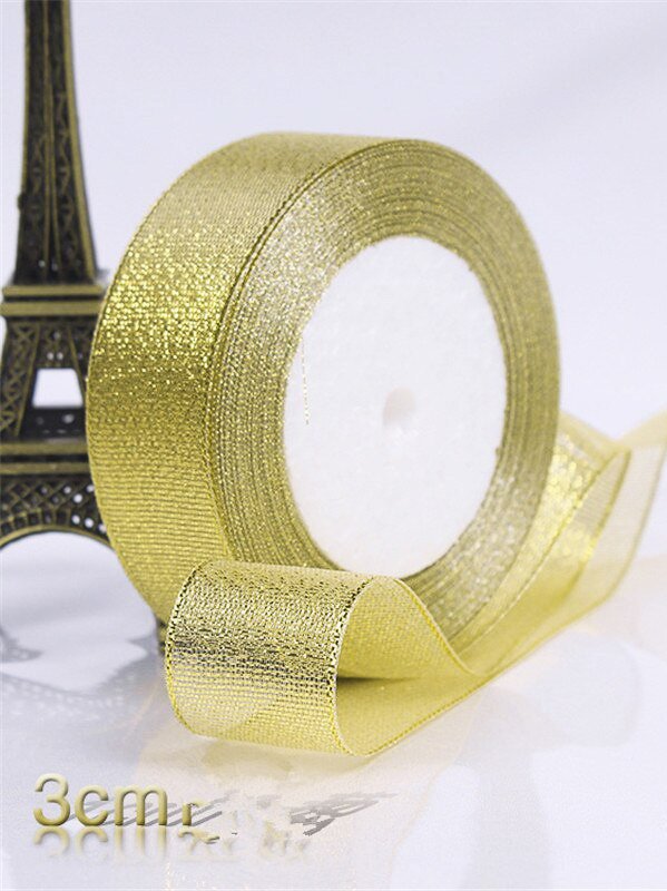 Duvar ya da masa süslemelerinde kullanabileceğiniz, mevlitlerde dağıtılan ufak armağan ve ikramlıkların ambalajlarına adapte edebileceğiniz gümüş simli kurdele modelimize En: 3 cm, Boy: 10 metre ölçüleriyle ulaşabilirsiniz.