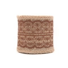 Renk tonu olarak dilediğiniz her kombine rahatlıkla entegre edebileceğiniz kahverengi dantelli jüt kurdele modelimiz En: 5 cm, Boy: 2 metre ebatlarıyla el emeği tasarım yapmayı sevenlerin beğenisine sunulur.